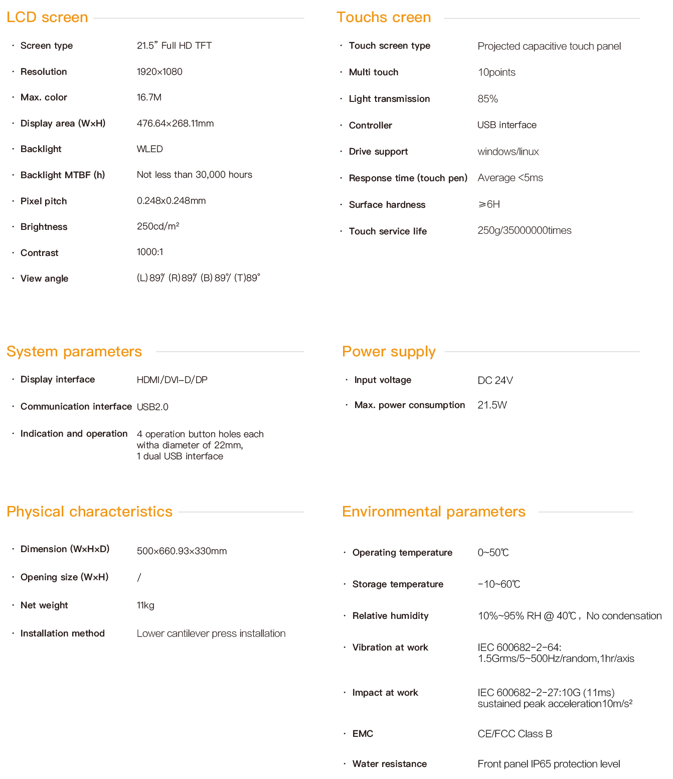 21.5-Inch Cantilever Touch Panel