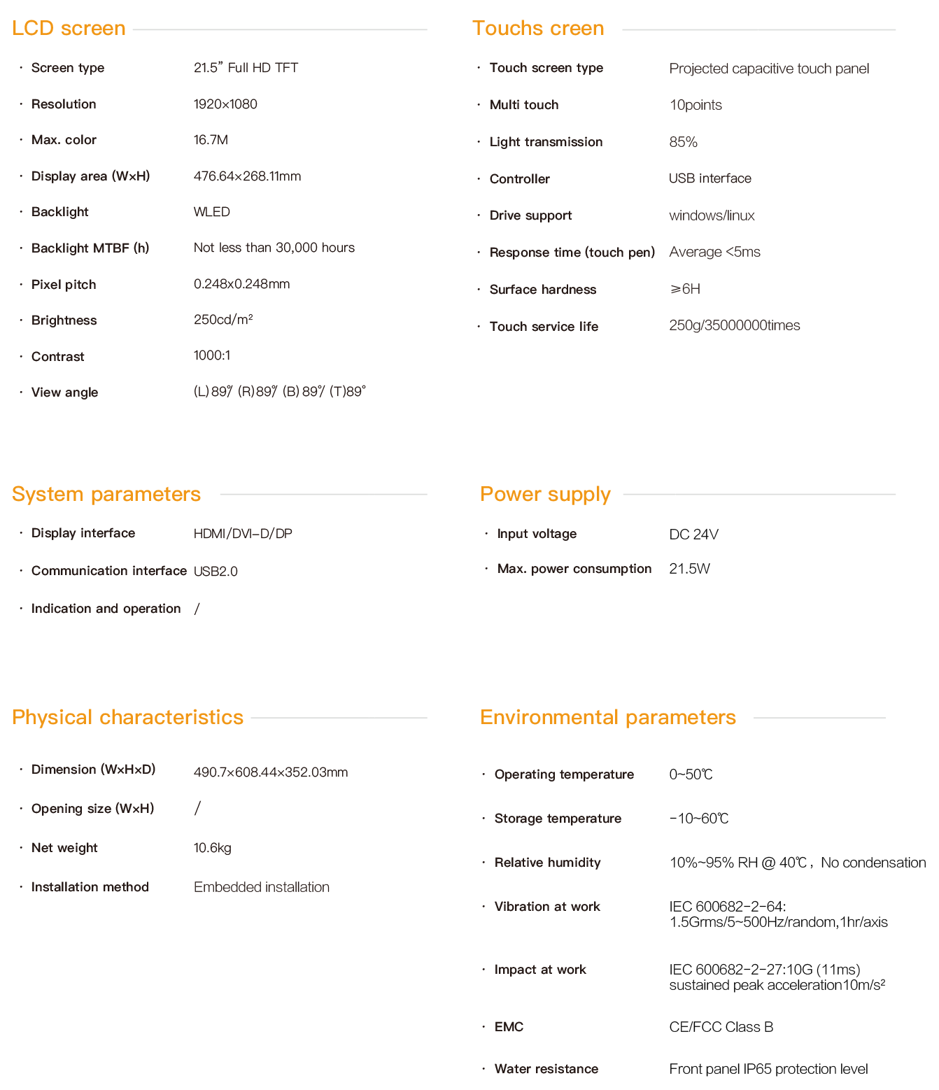 21.5-Inch Cantilever Touch Panel