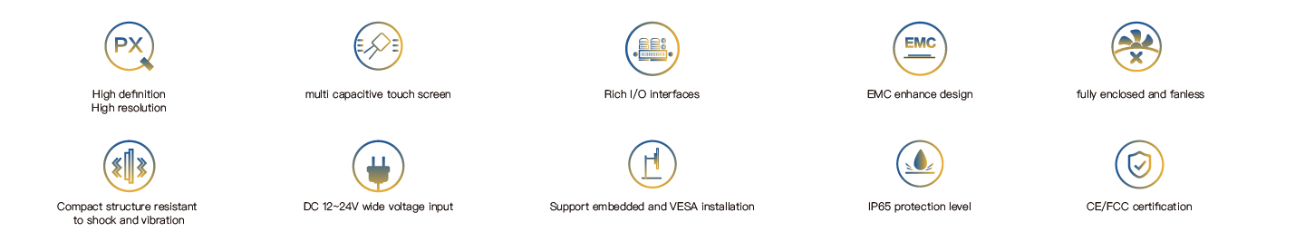 TPC-5615 is an embedded industrial capacitive touch tablet computer. It adopts a fanless and silent design, combining industrial display and touch screen technology. The product is compact in structure, easy to install and convenient to operate. It is a high-performance and highly reliable industrial computer system. The whole machine is equipped with a 15.6-inch high-definition LCD screen with a resolution of 1920x1080. Rich and delicate colors, wide viewing Angle, 12-24V wide-voltage DC power supply, and equipped with a round-port DC power connector with locking screws to prevent accidental dropping. The touch screen adopts a projected capacitive screen and supports 10-point touch. The main unit is based on the IntelElkhartLake processing platform CPU and uses the J6412 processor. It is equipped with a large-capacity solid-state SSD, DDR4 memory supporting 1×16G capacity, 4×USB3.0, dual intel Gigabit network cards, COM1 port supporting RS232/422/485, COM2 port supporting RS232/485, one M.2 expansion slot inside for 4G expansion, and another M.2 for WIFI expansion One HDMI and one DP interface are used for multi-display mode. TPC-5615 supports multiple installation methods: Hook-type embedded installation, wall-mounted and cantilevered installation based on VESA. The front panel complies with NEMA/IP65 waterproof and dustproof standards, preventing water droplets from entering due to on-site splashing when installed in the control cabinet. The high-strength all-steel sealed box structure has anti-impact and vibration protection functions. Especially, the dedicated EMC design endows the entire machine with excellent anti-interference capabilities, enabling it to adapt to the harsh working environments in industrial sites. It is widely used in industrial Settings with strong interference such as factory automation, mechanical manufacturing, CNC equipment, textile equipment, communication networks, and power automation.