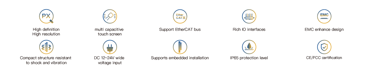The HPC-9618 is an industrial capacitive touch tablet computer that combines industrial display and touch screen technology. The product has a compact structure, is easy to install and operate, and is a high-performance and highly reliable industrial computer system. The whole machine adopts an 18.5-inch high-definition LCD screen with a resolution of 1920*1080, featuring rich and fine colors and a wide viewing Angle. It is powered by 24V DC and adopts a projected 10-point capacitive screen. The main unit is equipped with an Intel Core 6th / 7th generation CPU. Configurable large-capacity solid-state SSD, with memory support up to 32G capacity. The HPC-9618 supports hook-type embedded installation. The front panel complies with the IP65 water and dust resistance standard, preventing water splashes from entering during installation in the control cabinet. The high-strength all-steel box structure features shock resistance and vibration protection functions. Especially, the specialized EMC design enables the entire machine to have excellent anti-interference ability and be able to adapt to the harsh working environment in industrial sites. It is widely applied in industrial sites with strong interference such as factory automation, mechanical manufacturing, numerical control equipment, textile equipment, communication networks and power automation.