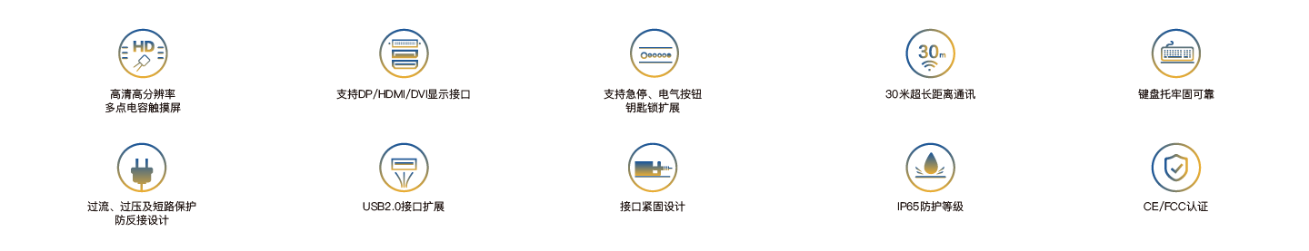 PD-3921是一款下懸臂安裝的豎屏工業(yè)觸控面板,帶有操作按鈕和鍵盤支架,配備21.5”分辨率為1920x1080的高清液晶顯示屏、投射式多點(diǎn)電容觸摸屏,支持HDMI、DVI、DP三種信號(hào)傳輸接口和多個(gè)USB2.0接口擴(kuò)展,PC與觸控面板最遠(yuǎn)通訊距離可達(dá)30米,整機(jī)DC24V供電,前面板IP65防護(hù)等級(jí),接口全部采用緊固設(shè)計(jì),且通過CE/FCC認(rèn)證,可適用于嚴(yán)苛的人機(jī)交互工業(yè)現(xiàn)場(chǎng)。