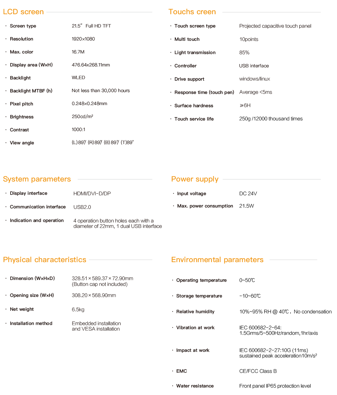 Product > PD series embedded industrial touch panel > 21.5-Inch Industrial Touch Panel > PD-8921
