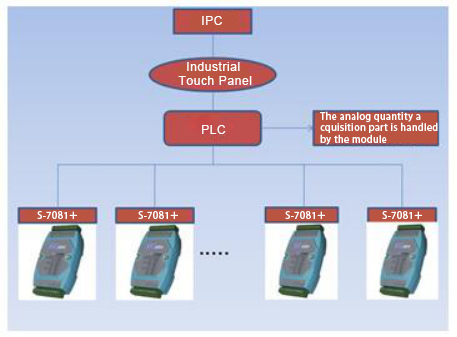 Industrial computer as the host, complete the data display and storage, PLC to complete the entire process and temperature control, and S-7018+ replaced the original PLC analog acquisition part, greatly reducing the cost.